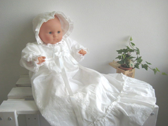 クラシックなデザイン ロング丈が特長!お帽子付き長袖ベビードレスセット(12125)ホワイト 価格: 13,440円 レビュー評価: 5.0 レビュー数:1 ドレスオール(ツーウェイオール)は 春秋物のスムース。長袖コートのロングコートとツーウェイオール、お帽子のついたベビードレス。ツーウェイオール 50センチコート 68センチ他のドレスに比べて、コートの丈が長め(68センチ)なので、記念写真では、とても見映えするデザインになっています。*コートの丈は、60センチ前後のものが多いようです。刺繍入り綿ローンのロングコートがとても上品なデザインです。光沢があり、大きく長い胸元のリボンもポイントですね。晴れやかなオーガンジーコートに比べると、清楚で優しい雰囲気です。コート・ツーウェイオールともに長袖。ツーウェイオールは、春秋物のスムース地。ロングのコート Supported by 楽天ウェブサービス |